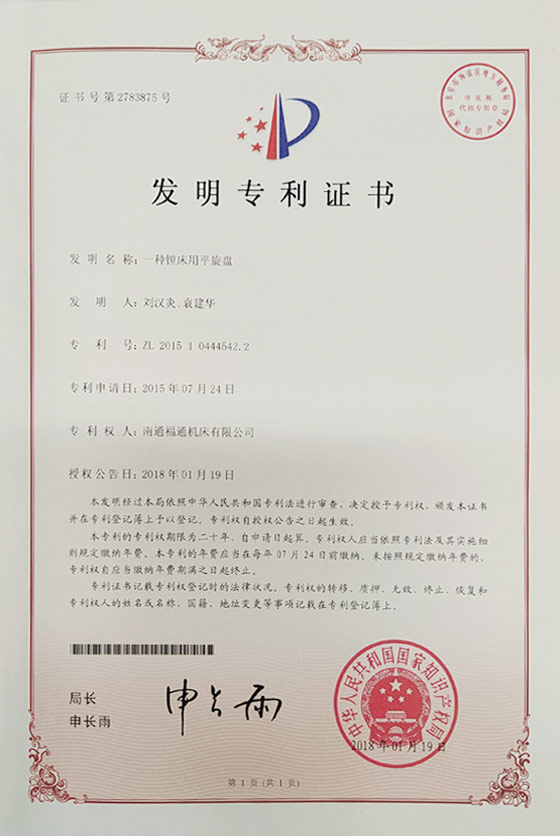 發(fā)明專利:一種鏜床用平旋盤,專利號(hào):ZL 2015 1 0444542.2